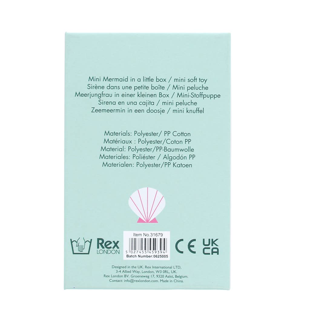 An enchanting miniature mermaid soft toy, featuring a beautiful blue tail and complete with her own pink top. Packaged in a lovely illustrated matchbox style gift box.