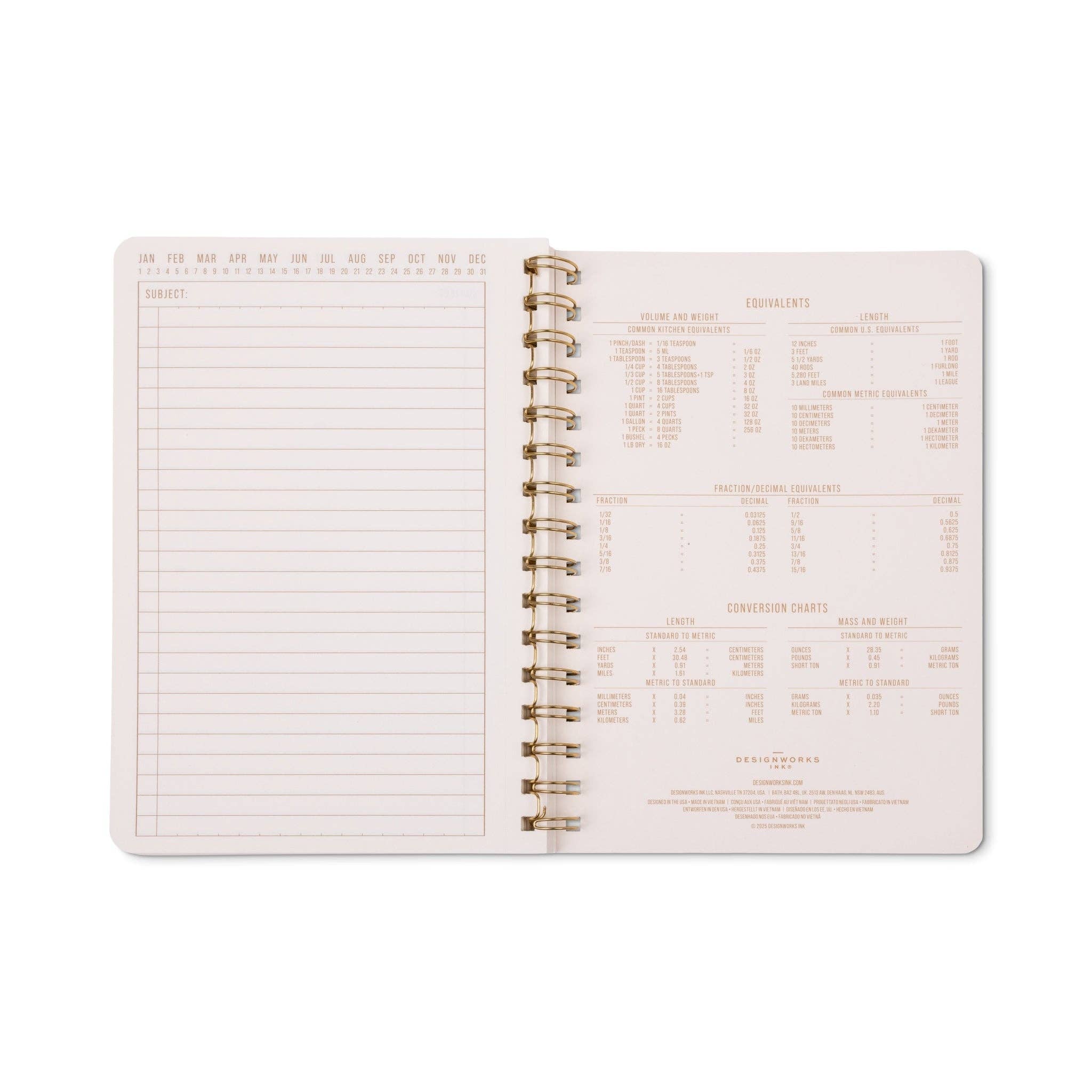 5.82" x 8.25" Small Gold Twin Wire Notebook Screenprinted on Textured Art Paper 160 Lined Perforated Pages