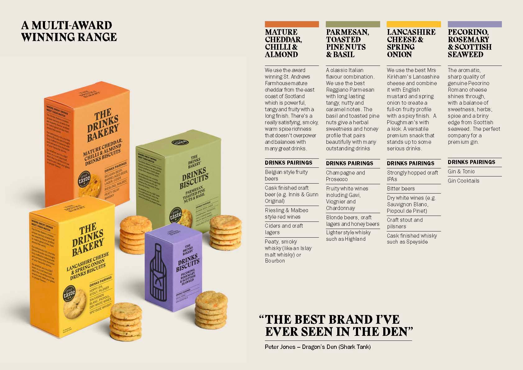Drinks Biscuits are the perfect premium snack for discerning delicatessens, liquor stores, farm stores, hotels, spas, bed and breakfasts and food halls. We proudly make Drinks Biscuits in the Highlands of Scotland with no artificial additives, colourings or flavourings. The craft production and provenance are a big part of why they are so delicious.