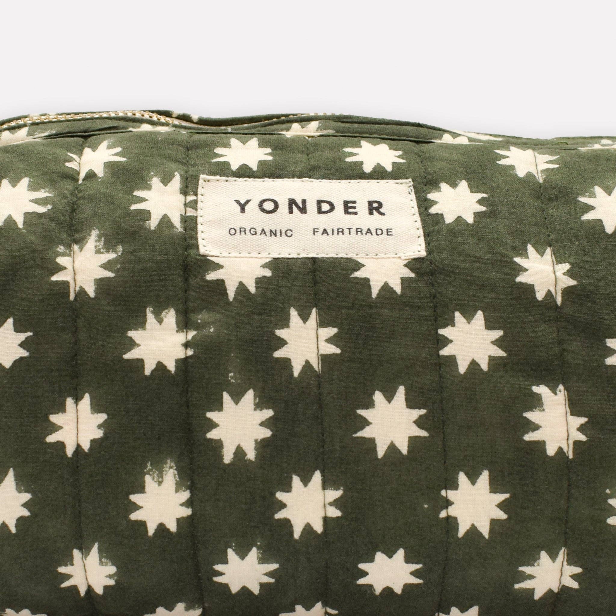 This quilted wash bag mixes handy travel vibes with a dash of handmade magic. Crafted from organic cotton, its star-block print on a serene sky blue canvas adds a sprinkle of cosmic sparkle to your everyday. Light to carry but tough enough to keep your bits and bobs in check, it’s the stylish, eco-friendly sidekick every adventurer needs.