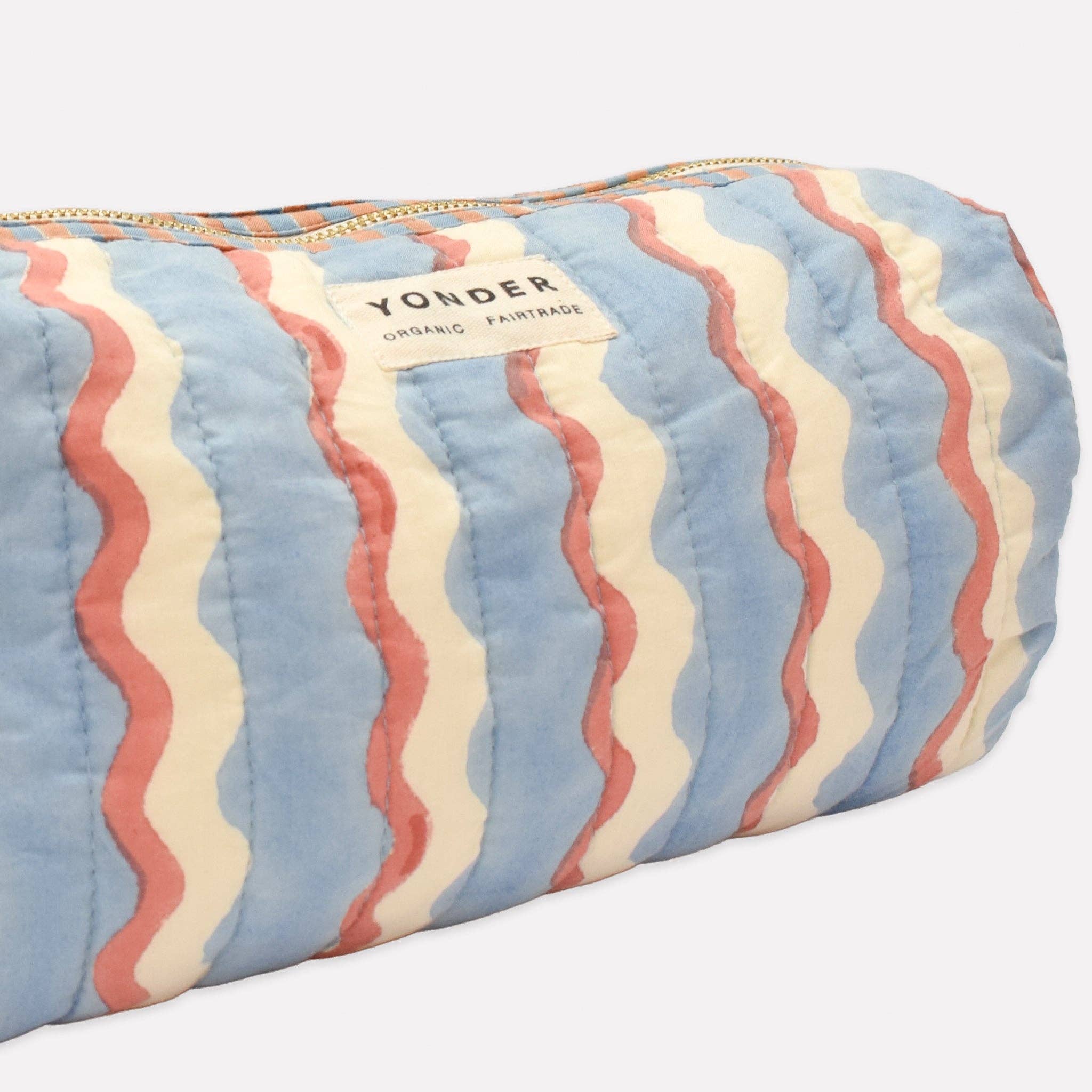 Hand block-printed in Jaipur, this organic cotton wash bag brings a breezy calm with its sky blue and soft coral waves. The lightly quilted texture gives it a cushioned feel and just the right amount of structure, making it perfect for keeping your daily essentials organised at home or on the go. Durable yet gentle, it’s coloured with eco-friendly, AZO-free dyes and crafted under fair, sustainable practices. A refreshing, practical piece that makes every routine feel a little more relaxed. * 100% Organic cotton * Hand block-printed in Jaipur * Dyed with eco-friendly, AZO-free pigments * Ethically and sustainably produced