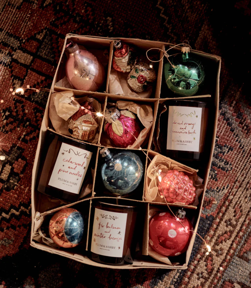 This set's beautiful box is more than just wrapping. The red bauble painted on the sides can enjoy the whole festive season from the branches of your Christmas tree. Simply unfold the box and follow the outlines of the baubles with a sharp pair of scissors. Then, with the ribbon provided, hang from boughs or garlands for many Christmases to come.