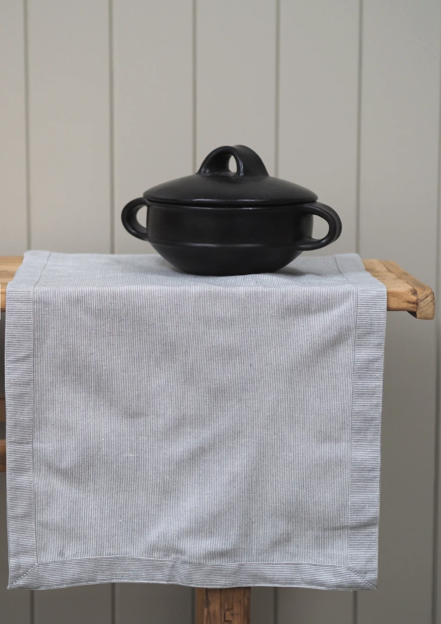 Classic woven pin stripe design with a beautifully finished border. Style with complimentary placemats and napkins.